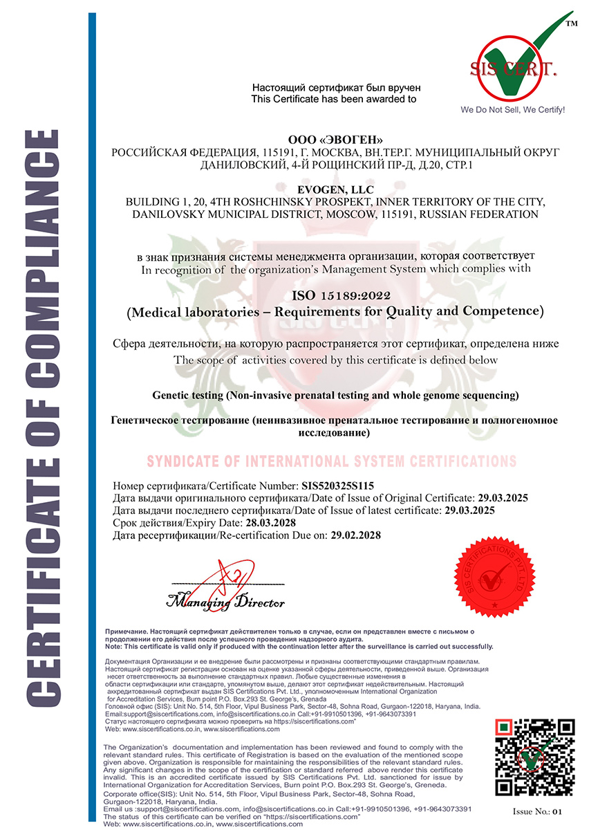 EVOGEN - современная российская инновационная компания, лидер в исследованиях генома, член Ассоциации Медицинских Генетиков и Федерации лабораторной медицины. Предоставляем широкий спектр услуг генетического тестирования. Проводим лекции и семинары для государственных и коммерческих учреждений, частных клиентов. Компания сотрудничает с ведущими научными и медицинскими организациями России. По инициативе EVOGEN создан комитет по медицинской генетике при ассоциации "Федерация лабораторной медицины".